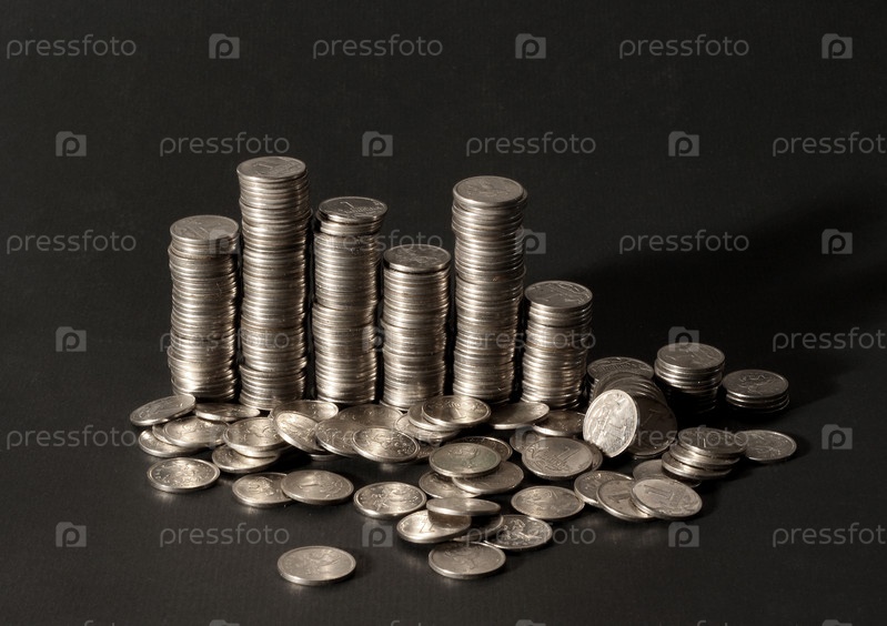 Колонки серебряных монет на черном фоне
