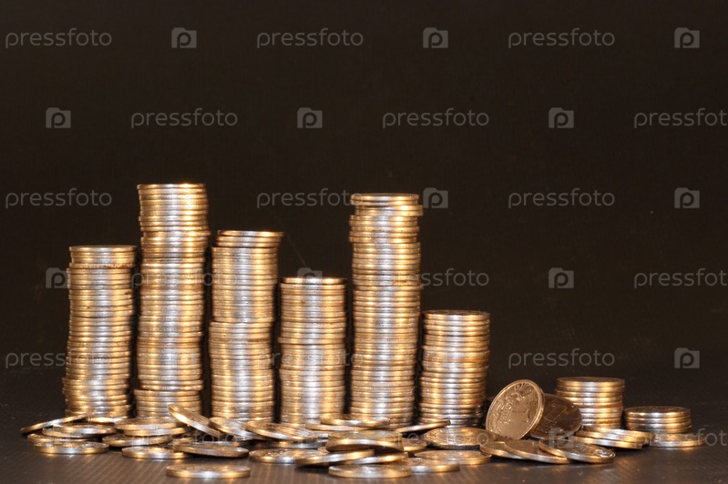 Колонки серебряных монет на черном фоне