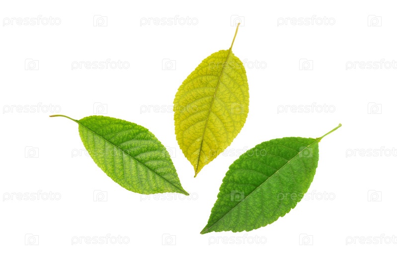 Зеленые листья на белом фоне