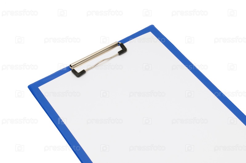Чистый лист на папке, на белом фоне