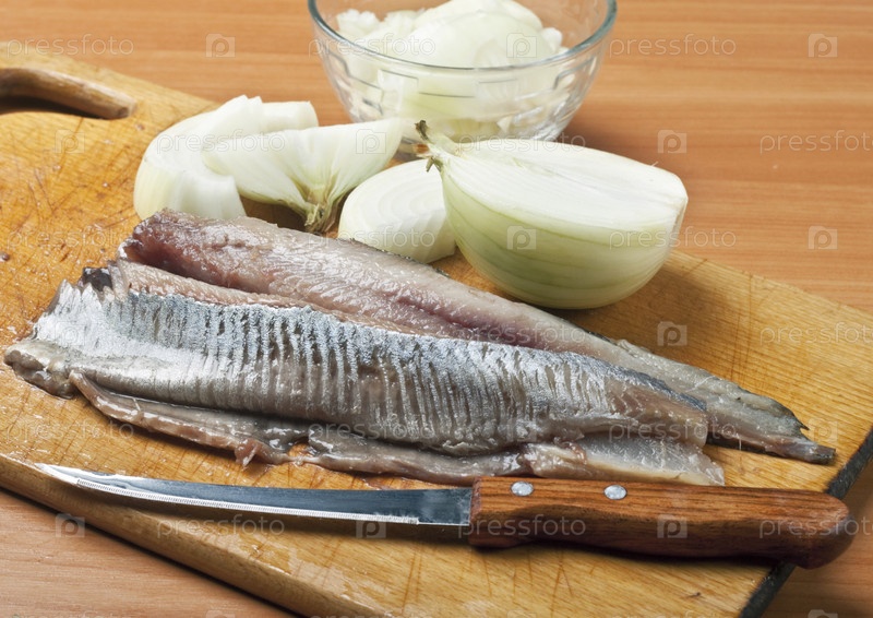 Филе сельди на кухонной доске