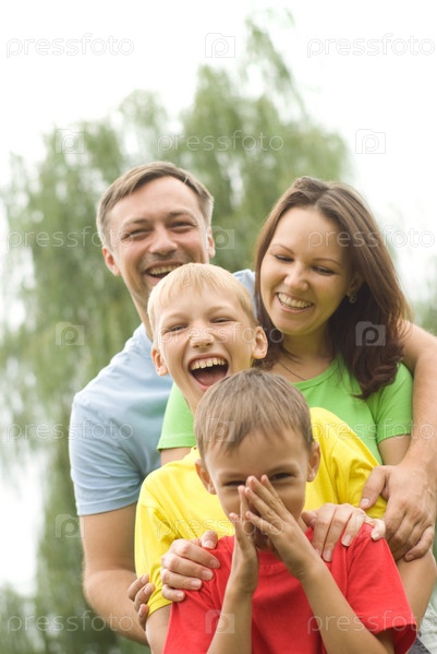 Счастливая семья в летнем парке