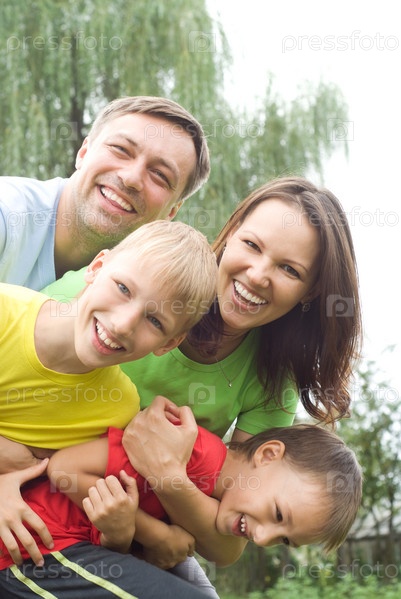 Счастливая семья в летнем парке