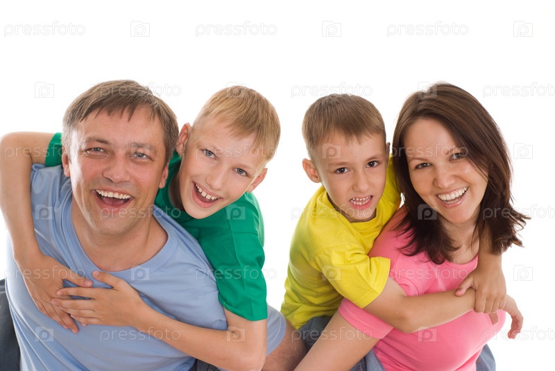 Счастливая семья на белом фоне