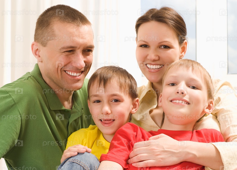 Счастливая семья в комнате