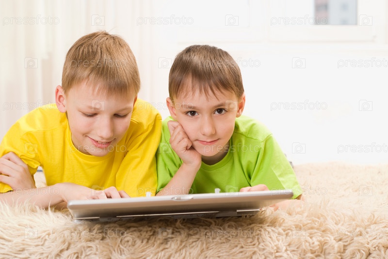 Счастливые братья, играющие на ноутбуке