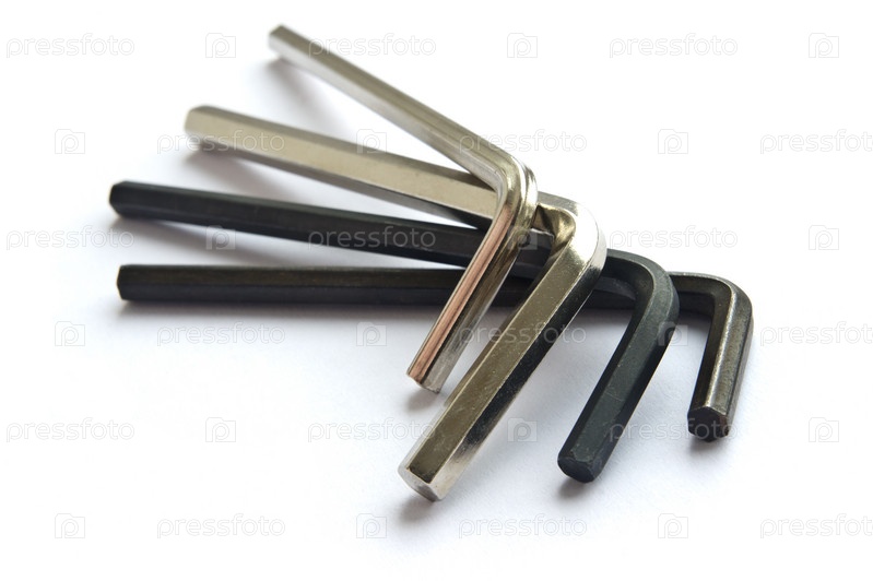 Четыре шестигранных ключа на белом фоне