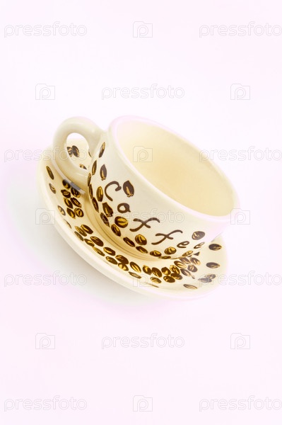 Кофейная чашка и блюдце на светлом фоне