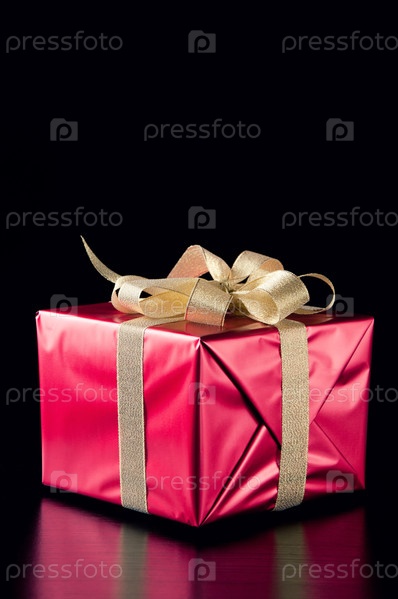 Красная подарочная коробка на черном фоне