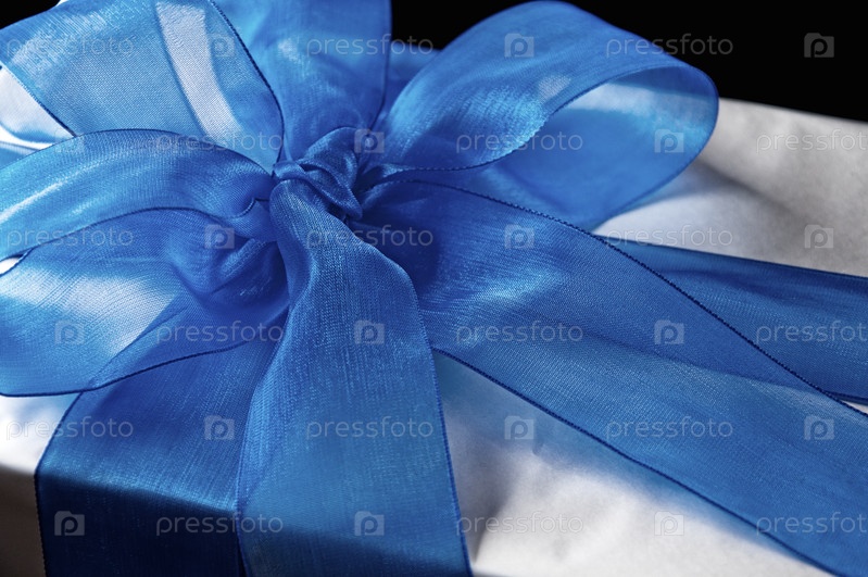 Синий бант на подарочной коробке