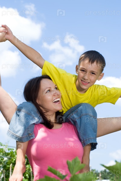Счастливая мать с ребенком на природе