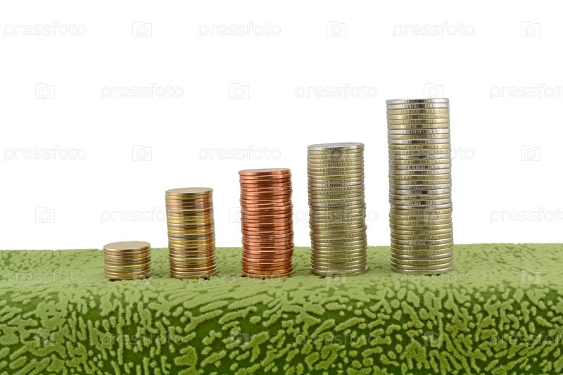 Стопки монет на белом фоне