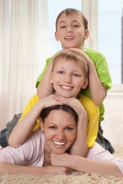 Молодая мать с детьми вместе