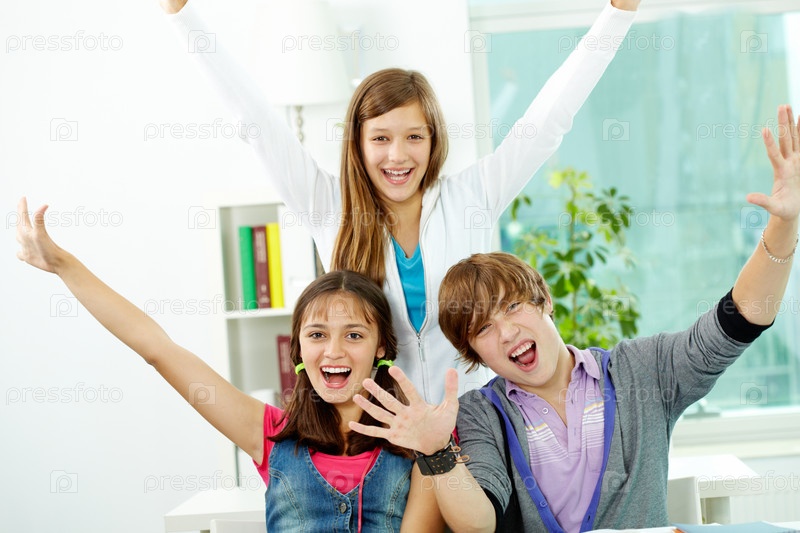 Радостные школьники в классе