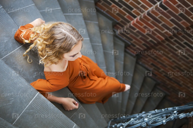 Красивая блондинка на лестнице