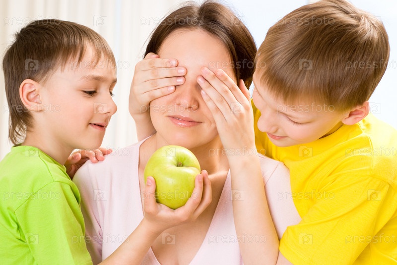 Мама и два мальчика в комнате