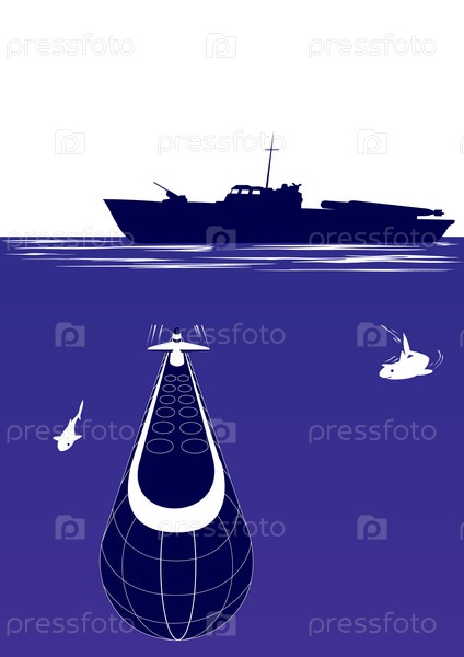 Военный корабль и подводная лодка