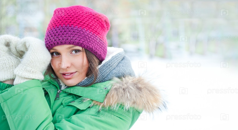 Портрет девушки в теплой зимней одежде на свежем воздухе