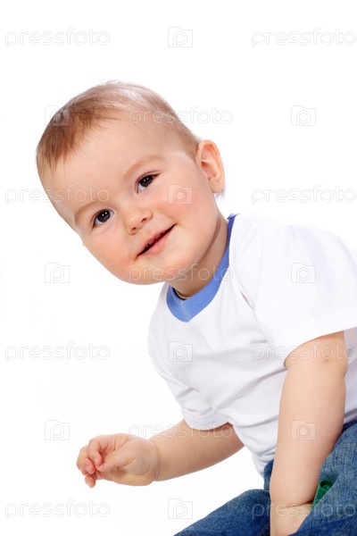 Счастливый маленький мальчик, изолированный на белом фоне