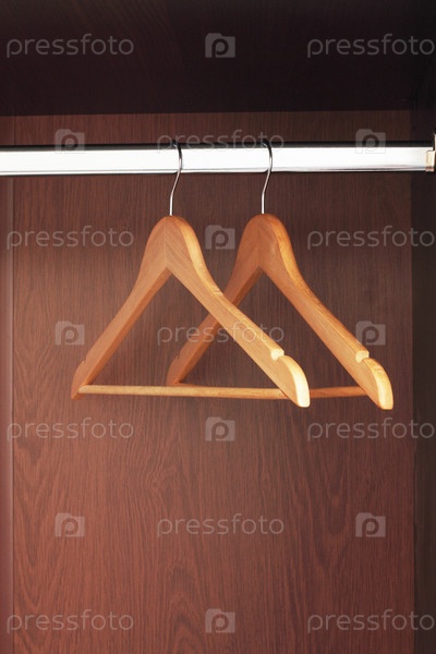 Две деревянные вешалки в пустом шкафу