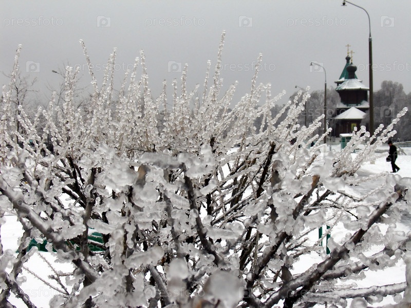 Лед на ветках кустарника