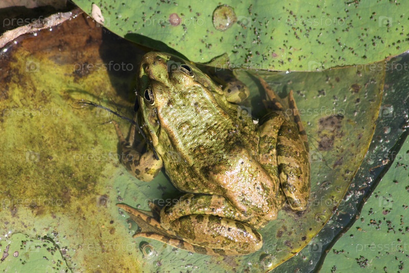 Лягушка сидит на листе на воде