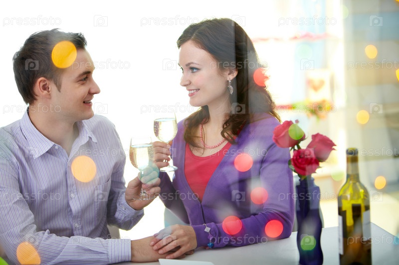 Молодая влюбленная пара с бокалами вина на свидании