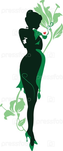 Силуэт беременной женщины с чашкой чая