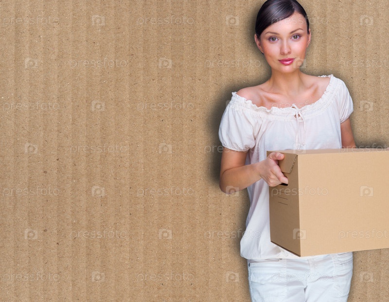 Девушка переносит коробку