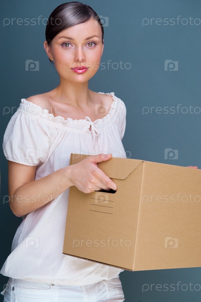 Девушка переносит коробку