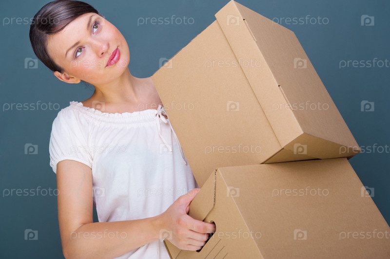 Девушка переносит коробки