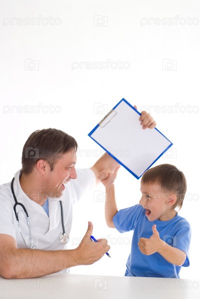 Мальчик с доктором на белом