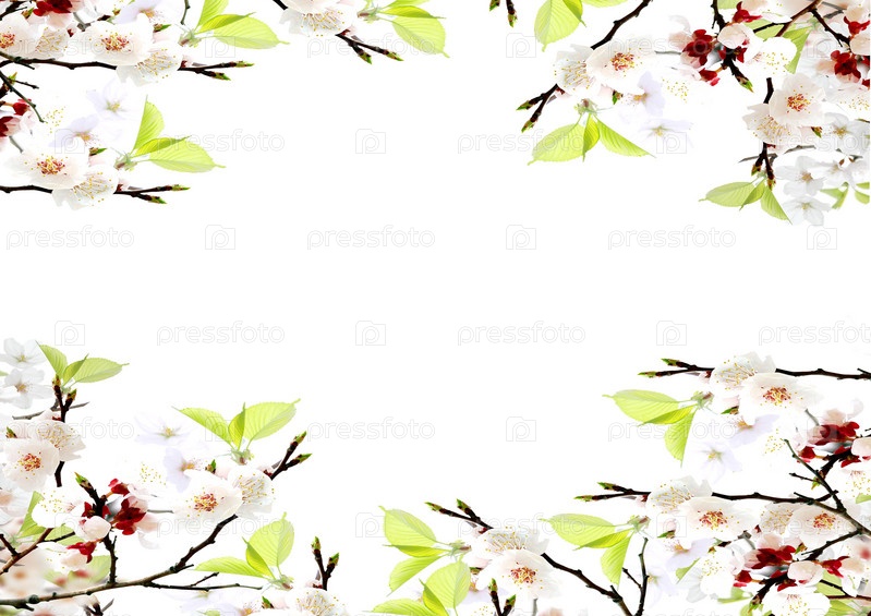 Цветы яблони на белом фоне