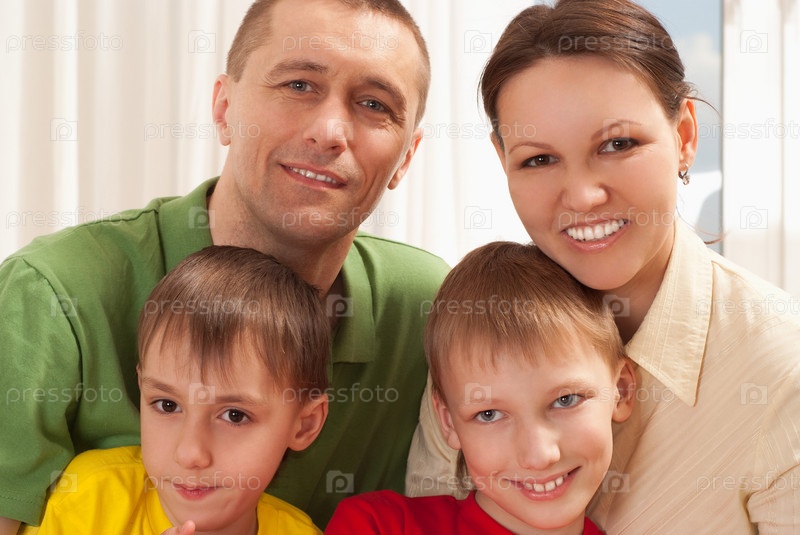 Портрет счастливой семьи в помещении