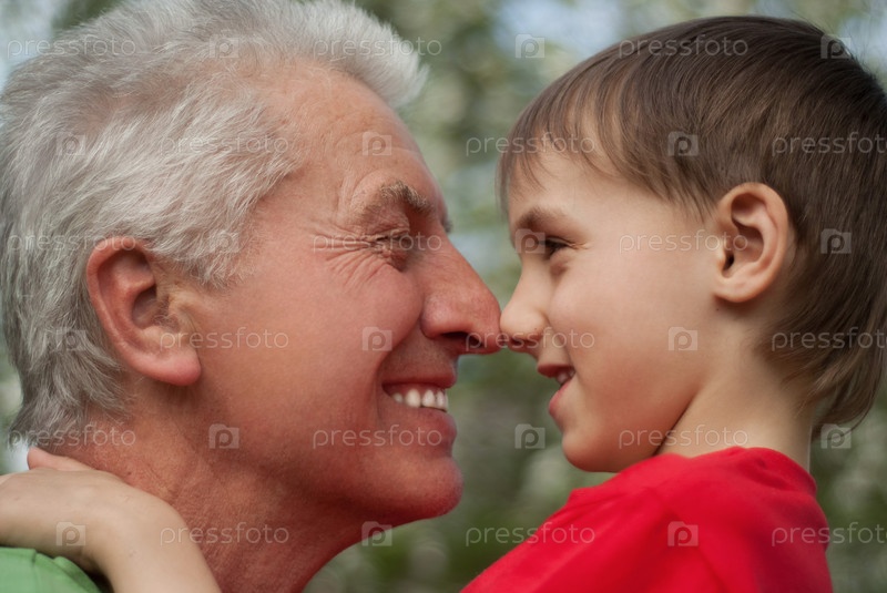 Портрет пожилого мужчины с внуком на открытом воздухе