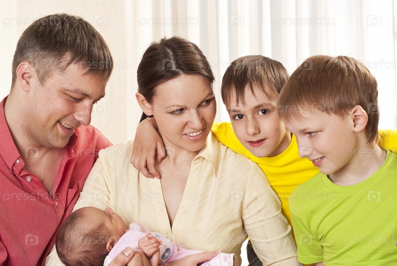 Счастливая пара с тремя детьми