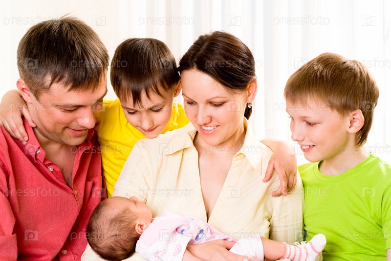 Счастливая пара с тремя детьми
