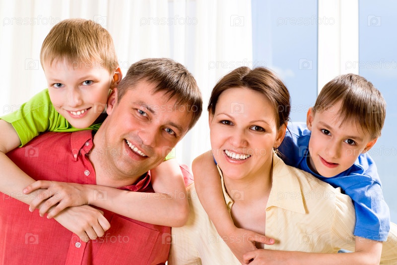 Портрет счастливой семьи в комнате