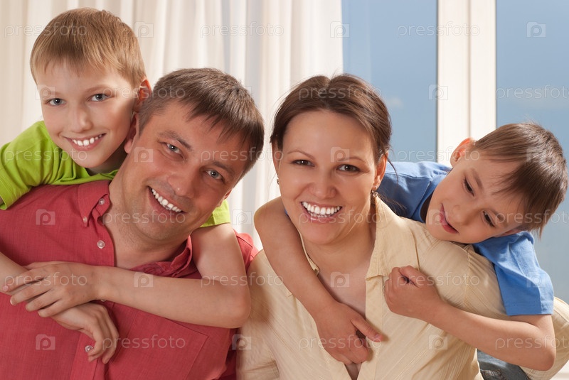 Портрет счастливой семьи в комнате
