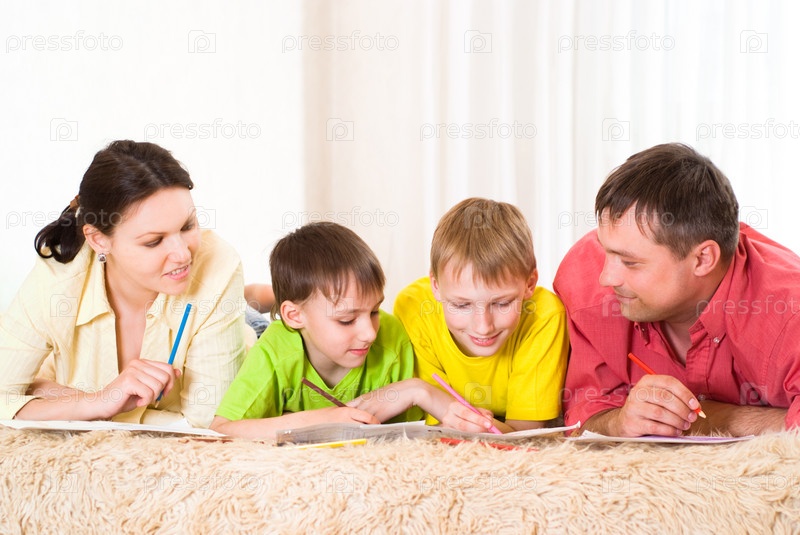 Портрет семьи, лежащей на ковре
