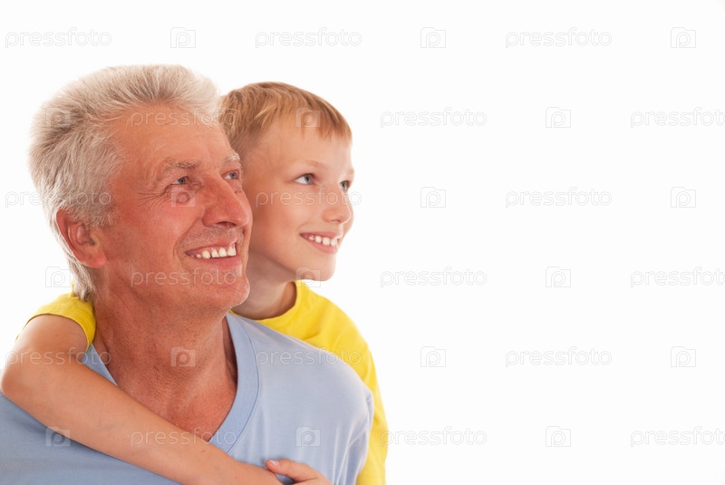 Дед и внук на белом фоне