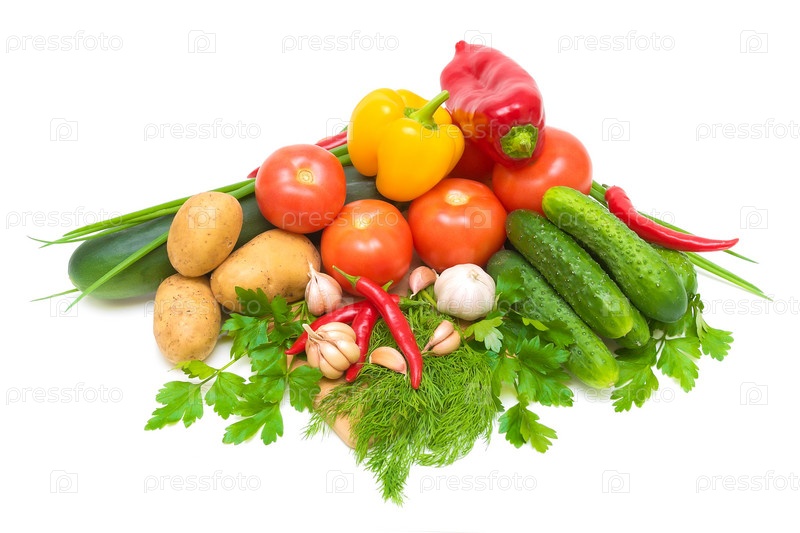 Различные овощи на белом фоне