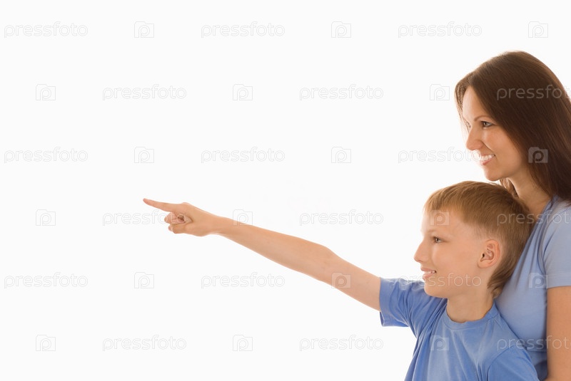 Счастливая мать с сыном на белом фоне