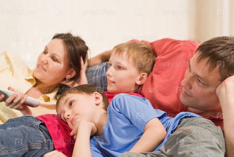 Дружная семья за просмотром телевизора
