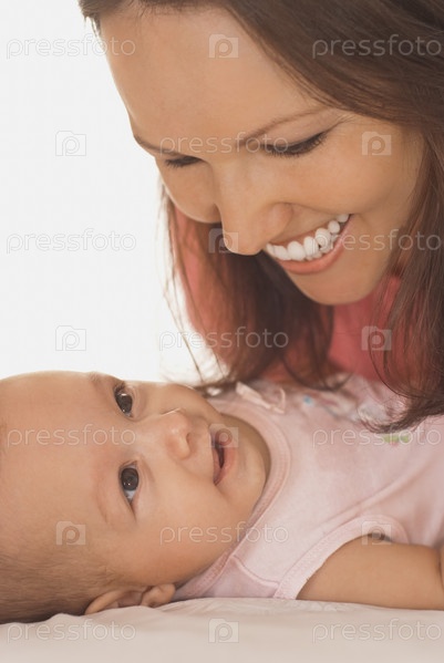 Мать с новорожденным ребенком на белом фоне