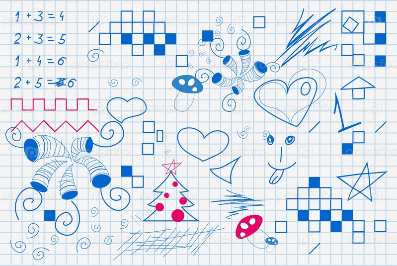 Рисунок ребенка в записной книжке. векторные иллюстрации