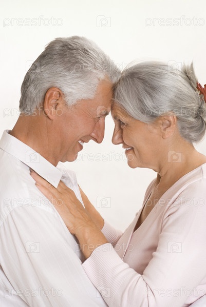 Счастливая пожилая пара на белом фоне