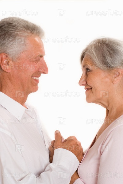 Счастливая пожилая пара на белом фоне