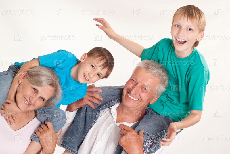 Счастливая семья из четырех человек, на белом фоне