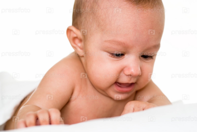 Красивый малыш на белом фоне